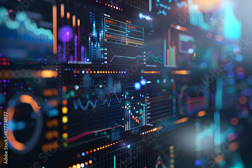 Obraz premium Futuristic digital interface with data charts and graphs, representing...