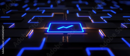 © VANATSANUN, Obraz premium Futuristic digital interface with glowing blue elements and a central icon.