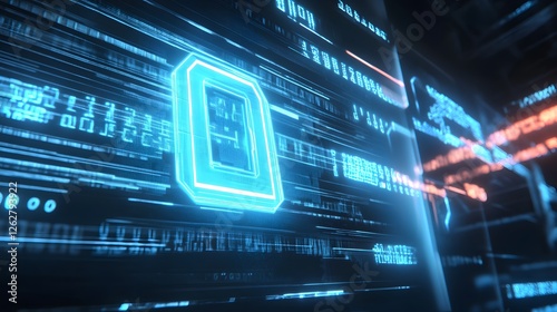 Obraz premium Futuristic Digital Interface with Glowing Circuit Elements and Data