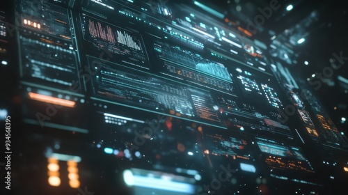 Fototapeta premium Futuristic Digital Interface with Glowing Data and Code on Black Background.