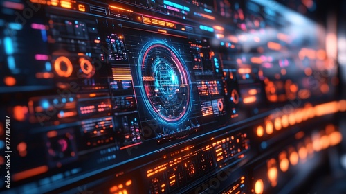 Fototapeta premium futuristic digital interface with glowing data visualizations