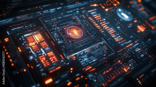 Fototapeta premium Futuristic digital interface with glowing elements.