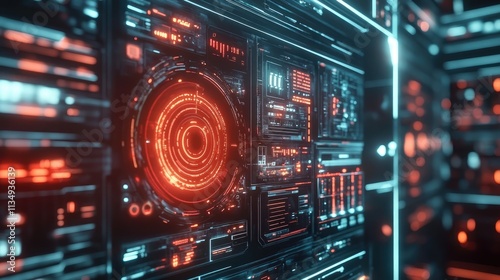 Obraz premium Futuristic digital interface with glowing elements for data analysis and...
