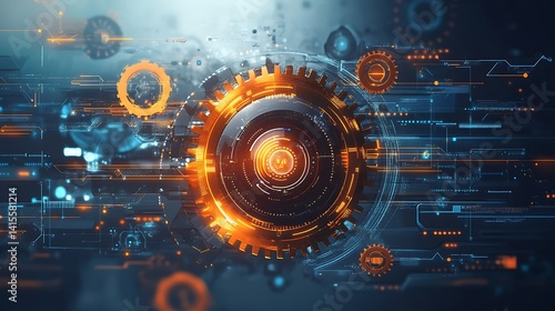 © NCSF, Obraz premium Futuristic Digital Interface with Glowing Elements, Futuristic digital interface with glowing orange and blue circular elements