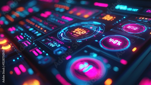 © Akun, Obraz premium Futuristic digital interface with glowing neon displays