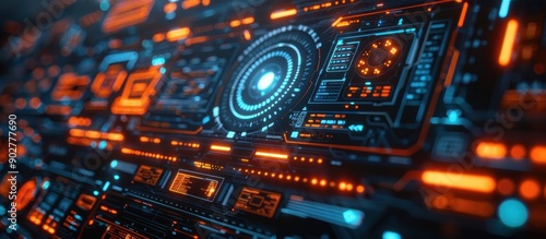 Obraz premium Futuristic Digital Interface with Glowing Orange and Blue Elements in a...