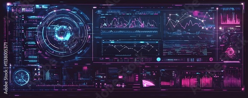 © Akash, Fototapeta premium Futuristic digital interface with graphs and network lines