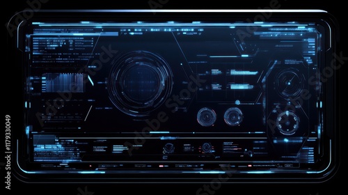 Obraz premium Futuristic digital interface with HUD elements on a dark background.