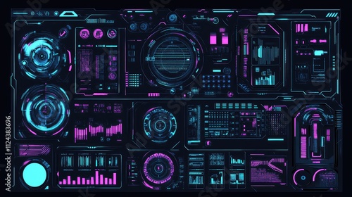 Fototapeta premium Futuristic Digital Interface with Neon Colors and Data Visualization