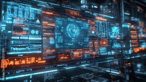 © Monchisa, Obraz premium Futuristic Digital Interface with Neon Highlights and Data Streams
