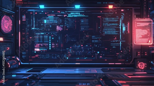 Obraz premium Futuristic Digital Interface with Neon Lights and Data Display