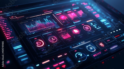 Obraz premium Futuristic Digital Interface With Neon Lights And Data Visualizations