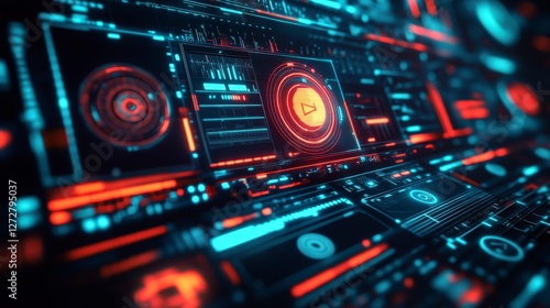 Obraz premium Futuristic Digital Interface with Neon Lights and Interactive Elements
