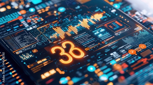 © BOJOShop, Obraz premium Futuristic Digital Interface with Number and Data Visualization