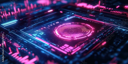 Obraz premium Futuristic digital interface with pink and blue lights.