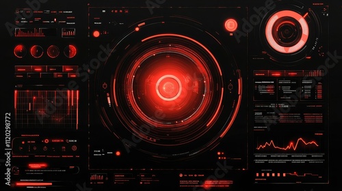 Fototapeta premium Futuristic digital interface with red accents and data visualizations.