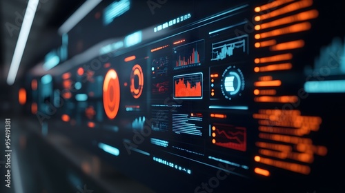 © Phichaphat, Obraz premium Futuristic Digital Interface with Red and Blue Glows