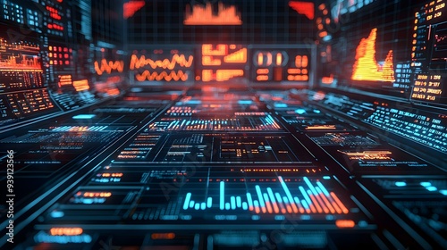 © Teerapat, Fototapeta premium Futuristic Digital Interface with Red and Blue Neon Lights