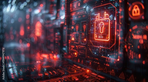 © frank29052515, Obraz premium Futuristic Digital Interface with Security Elements