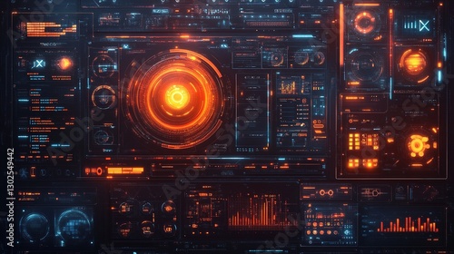 © hongzhi, Obraz premium Futuristic digital interface with vector graphics, UI elements, and tech-savvy design for GUI, UI, UX, KIT.