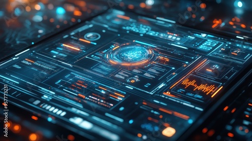Obraz premium Futuristic digital interface with vibrant data visualizations and technology...