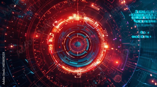 Obraz premium Futuristic digital interface with vibrant red and blue circular elements,...