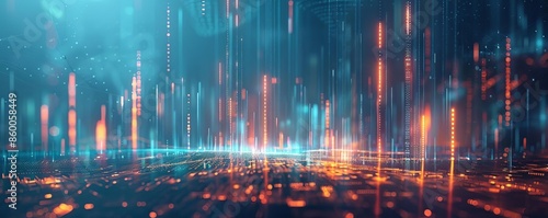 Fototapeta premium Futuristic digital landscape with neon lights, representing data flow and...