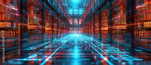 Fototapeta premium Futuristic Digital Library Hologram for Education and Technology Integration