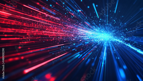 © Hassan Gallary, Naklejka premium "Futuristic Digital Lines on Red and Blue Background Representing Data Transfer Speed"