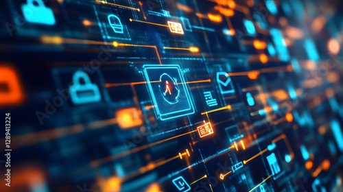 © sangsom, Obraz premium Futuristic Digital Marketplace Interface with Dynamic Color Patterns and Data Network Elements