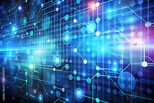© setan cell, Obraz premium Futuristic digital network data flow; abstract background for tech websites