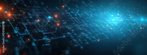 © btiger, Obraz premium Futuristic Digital Network Interface Minimalistic Design Cyberpunk Style Innovation Technology Flow Chart Concept