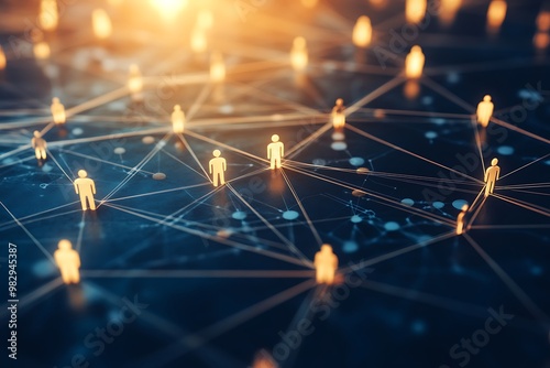 Fototapeta premium Futuristic Digital Network Landscape with Glowing Geometric Patterns and Connections