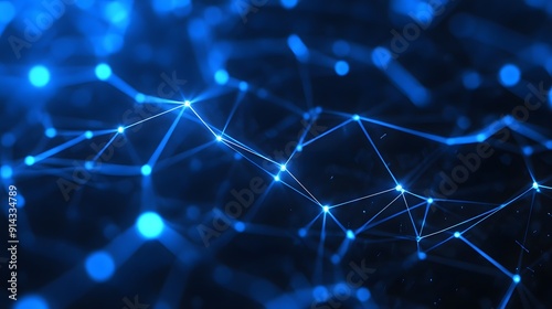 Obraz premium Futuristic digital network with connecting blue nodes and lines, representing...