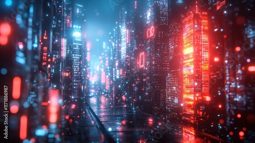 Obraz premium Futuristic Digital Padlock with Glowing Neon Edges in Cyberpunk Setting...