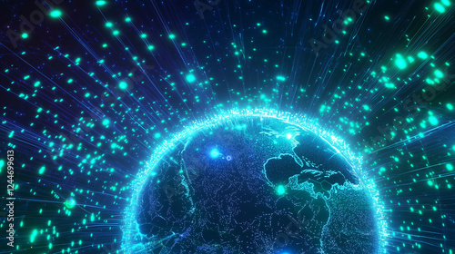 Obraz premium Futuristic Digital Planet Earth with Tech Devices and Data Flow