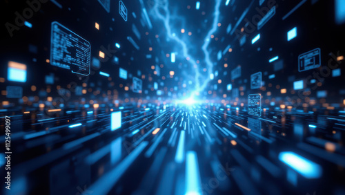 Fototapeta premium Futuristic digital scene with floating data particles representing a...