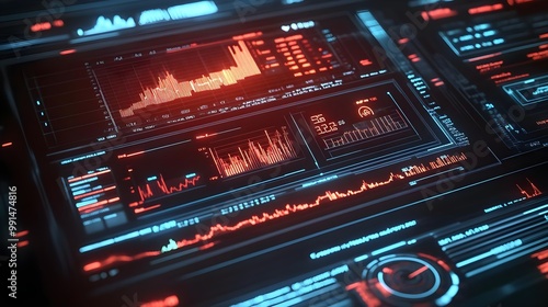 © Neungruedee, Obraz premium Futuristic Digital Screen Displaying Data Visualization