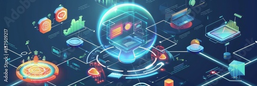 Obraz premium Futuristic Digital Technology Concept with Holographic Interface, Data...