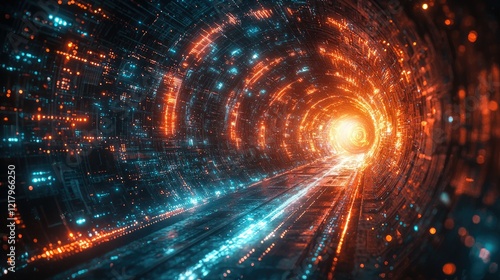 Naklejka premium Futuristic Digital Tunnel Pathway Of Light And Energy