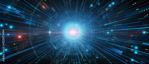 © TrendyImages, Naklejka premium Futuristic Digital Tunnel with Glowing Code