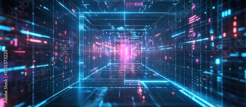 Fototapeta premium Futuristic digital tunnel with glowing lines