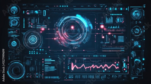 Obraz premium Futuristic digital user interface displays information and data visualizations