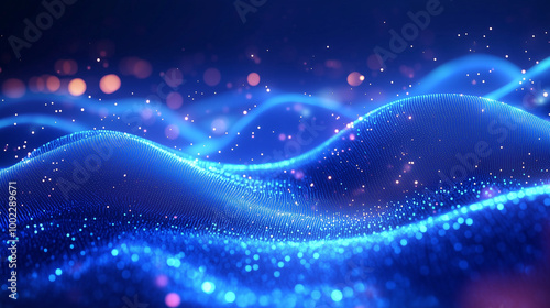 © Vivian, Fototapeta premium Futuristic Digital Wave with Glowing Particles – Abstract Technology, AI, and Data Visualization Background