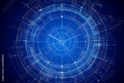 © Emongrapic, Fototapeta premium Futuristic Digital Wireframe Clock Concept on Blue Background