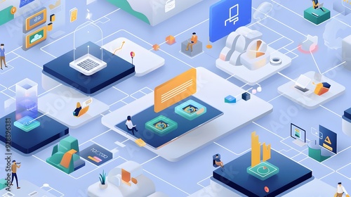 © pkproject, Obraz premium Futuristic Digital Workspace with Innovative Interface and Cutting-Edge Devices
