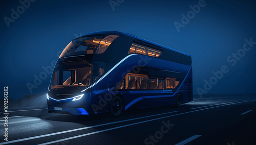 Obraz premium Futuristic Double-Decker Bus Illuminated at Night