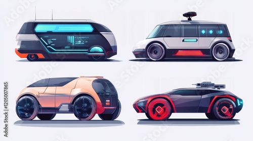 Naklejka premium Futuristic driverless automobiles. Smart vehicles digital software....