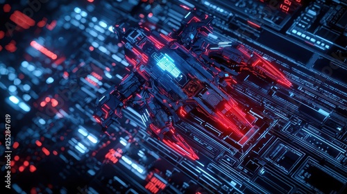 Fototapeta premium Futuristic Drone On Circuit Board With Glowing Lines