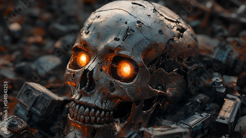 Fototapeta premium Futuristic Dystopian Cybernetic Skull - 3D Rendering of Mechanical & Sci-Fi...
